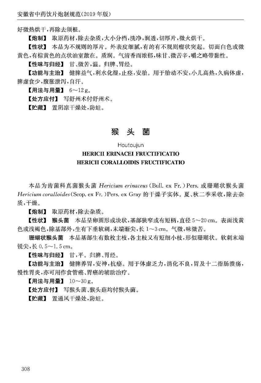 安徽省中药饮片炮制规范 > 猴头菌