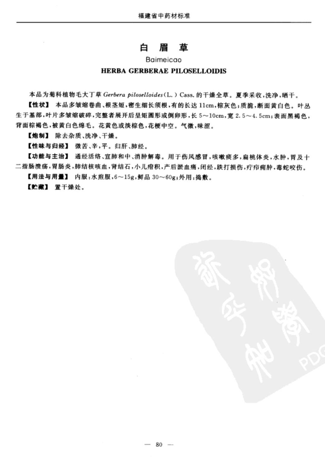 福建省中药材标准 > 白眉草