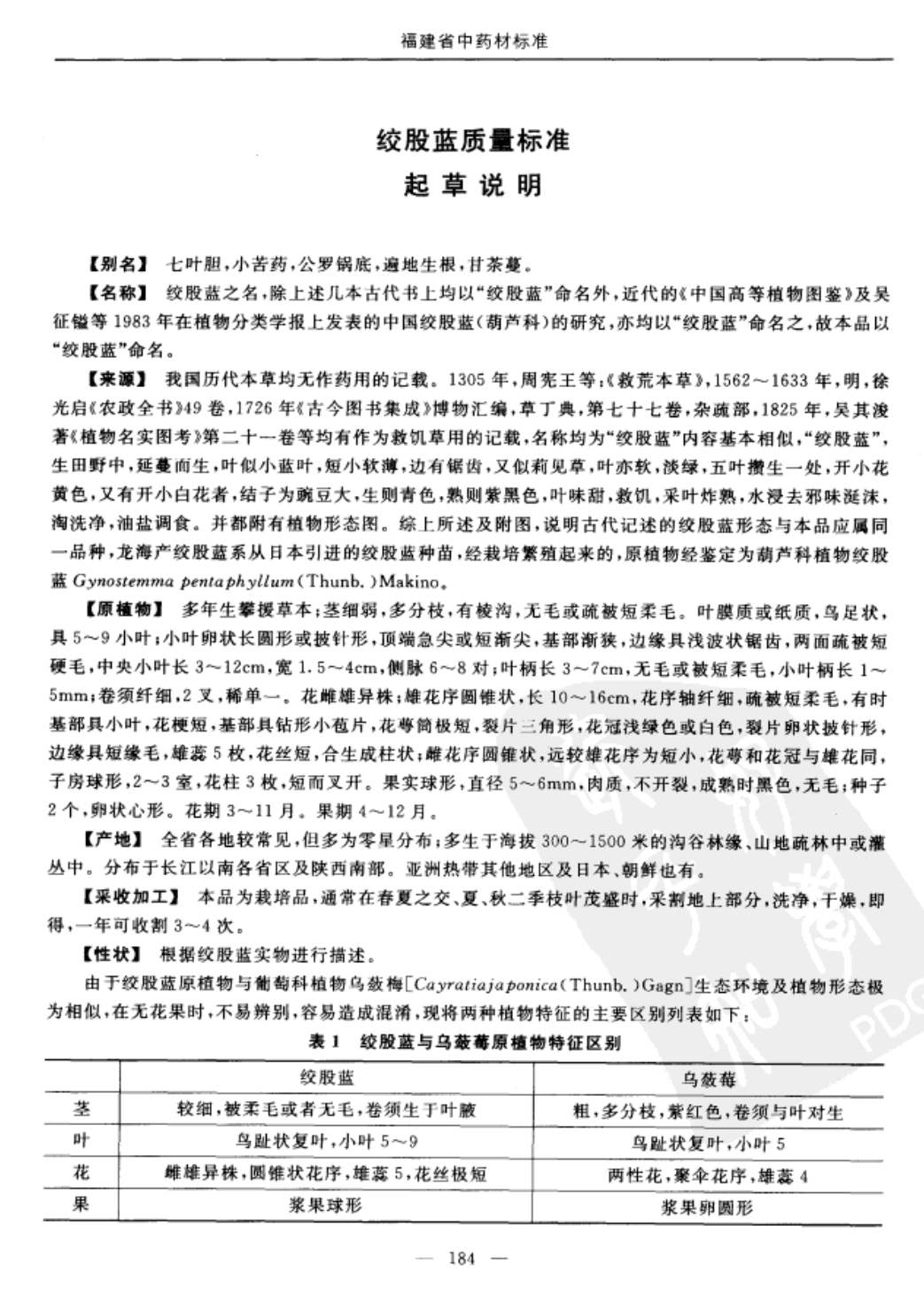 福建省中药材标准 > 绞股蓝