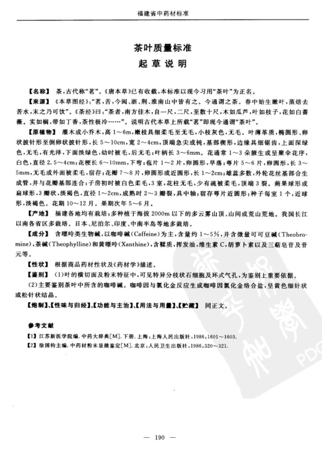 福建省中药材标准 > 茶叶