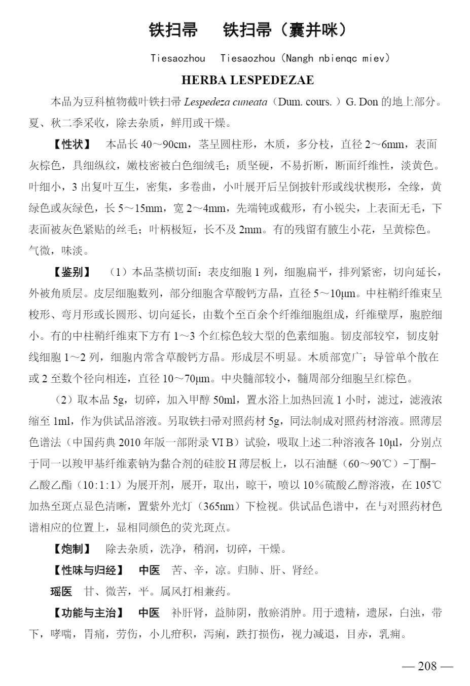 广西壮族自治区瑶药材质量标准 > 铁扫帚/铁扫帚
