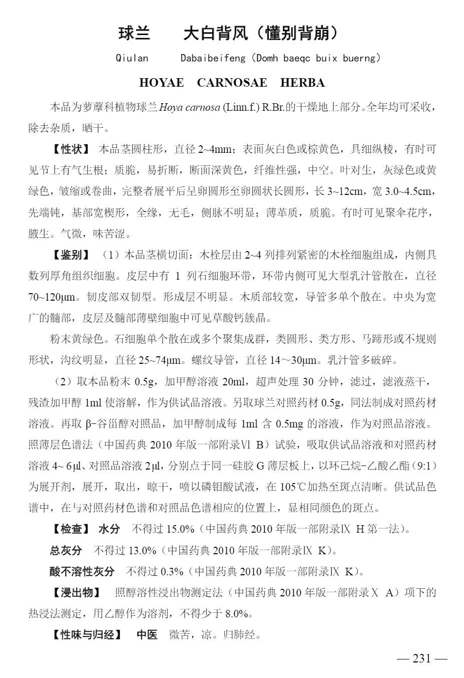 广西壮族自治区瑶药材质量标准 > 球兰/大白背风