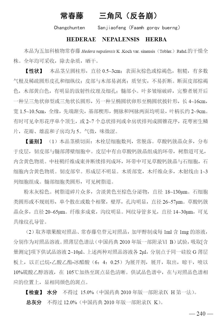 广西壮族自治区瑶药材质量标准 > 常春藤/三角风