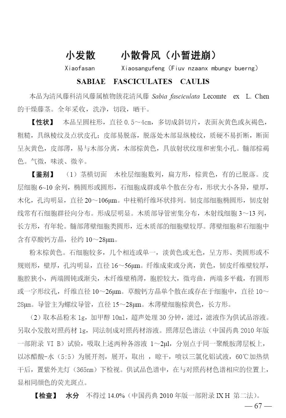 广西壮族自治区瑶药材质量标准 > 小发散/小散骨风