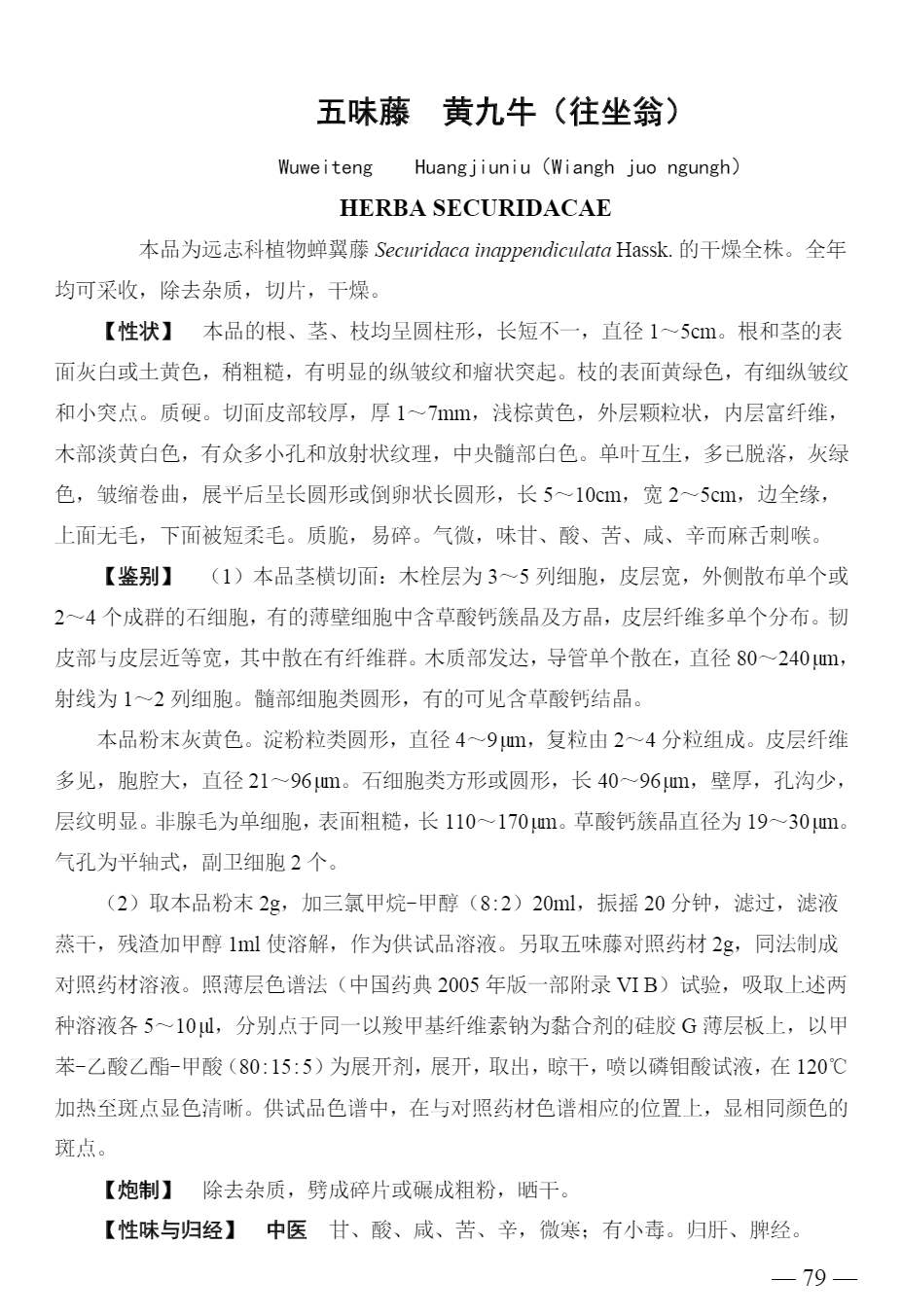 广西壮族自治区瑶药材质量标准 > 五味藤/黄九牛