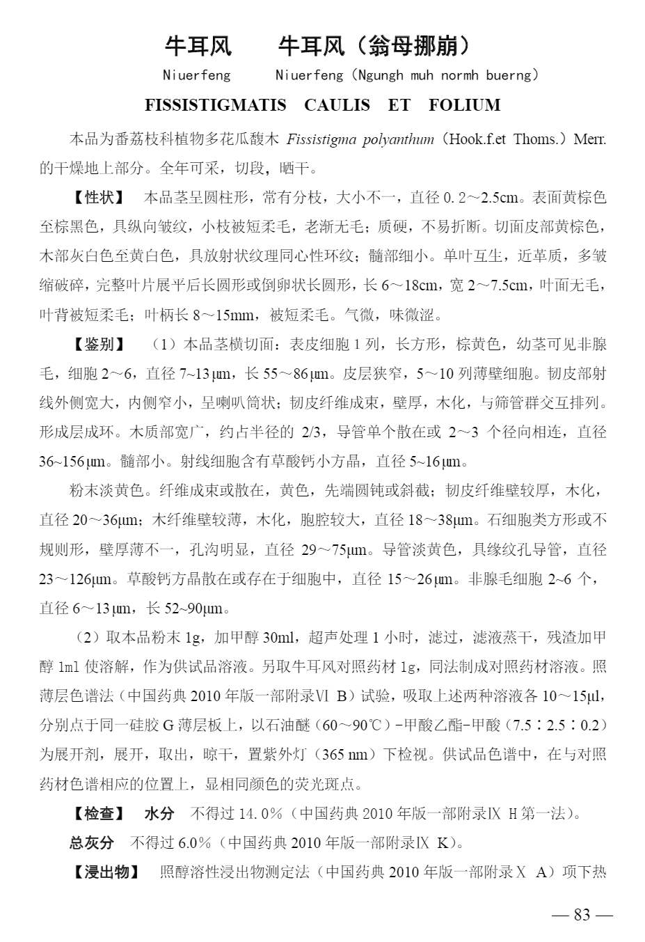 广西壮族自治区瑶药材质量标准 > 牛耳风/牛耳风