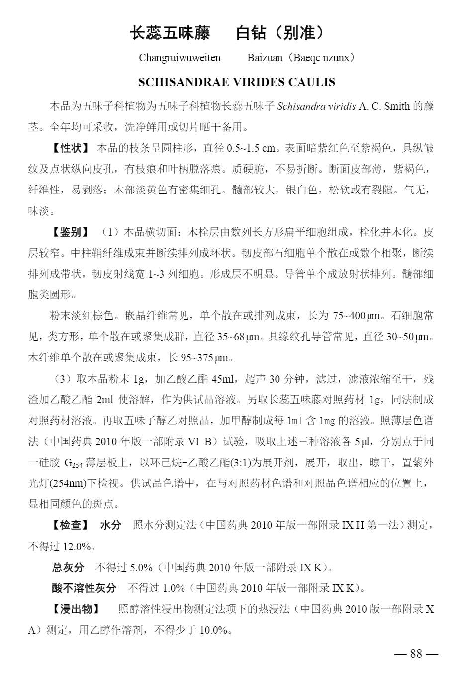 广西壮族自治区瑶药材质量标准 > 长蕊五味藤/白钻