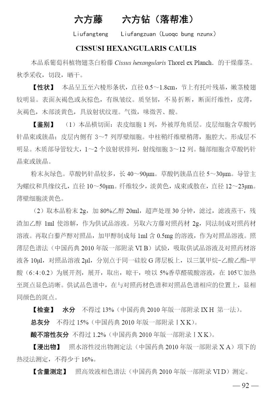 广西壮族自治区瑶药材质量标准 > 六方藤/六方钻