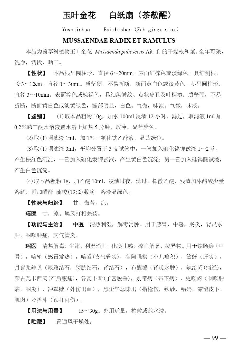 广西壮族自治区瑶药材质量标准 > 玉叶金花/白纸扇