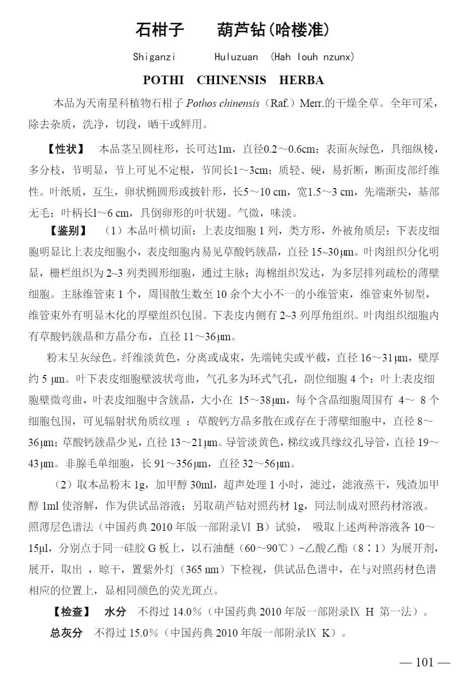 广西壮族自治区瑶药材质量标准 > 石柑子/葫芦钻