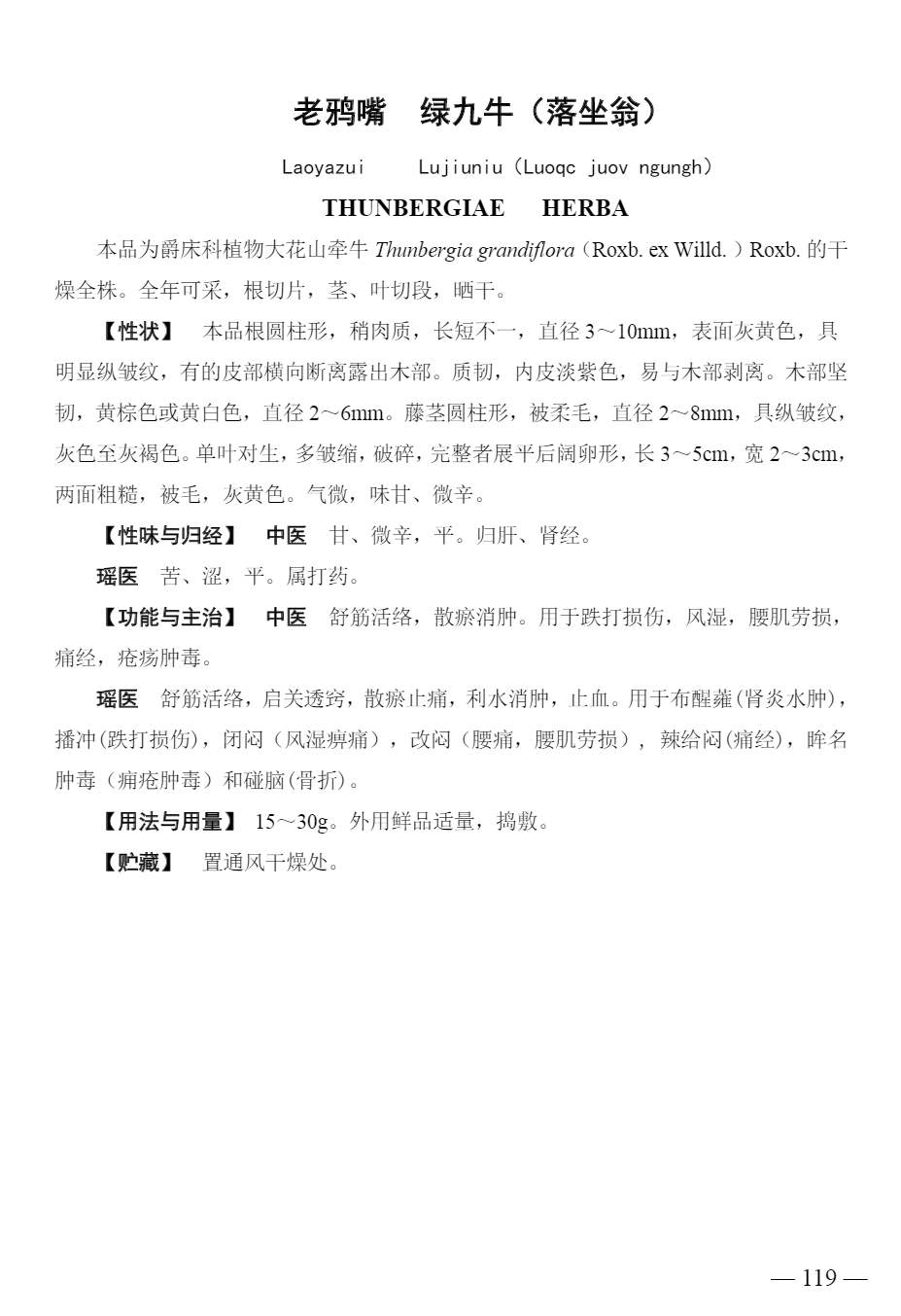 广西壮族自治区瑶药材质量标准 > 老鸦嘴/绿九牛