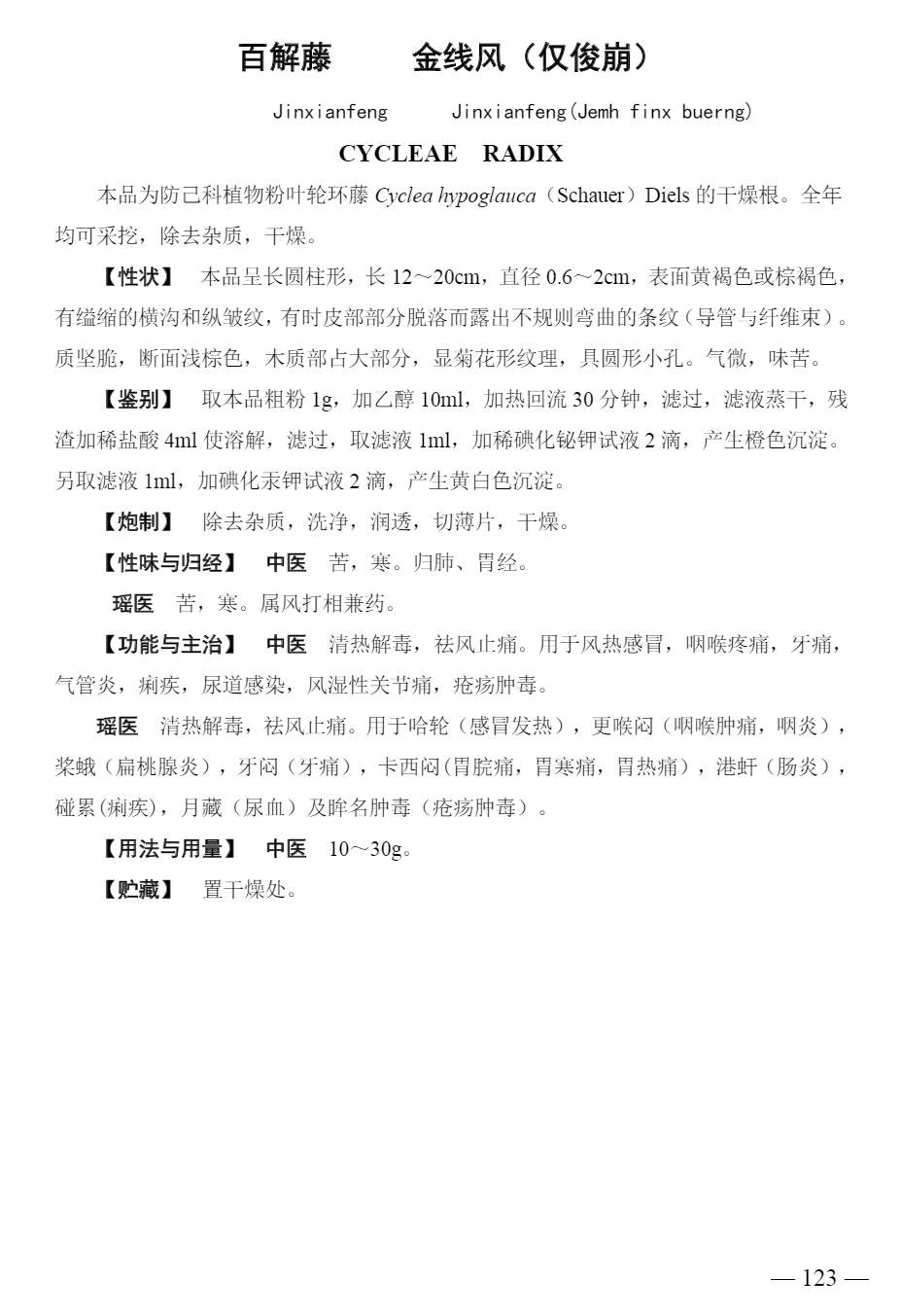广西壮族自治区瑶药材质量标准 > 百解藤/金线风