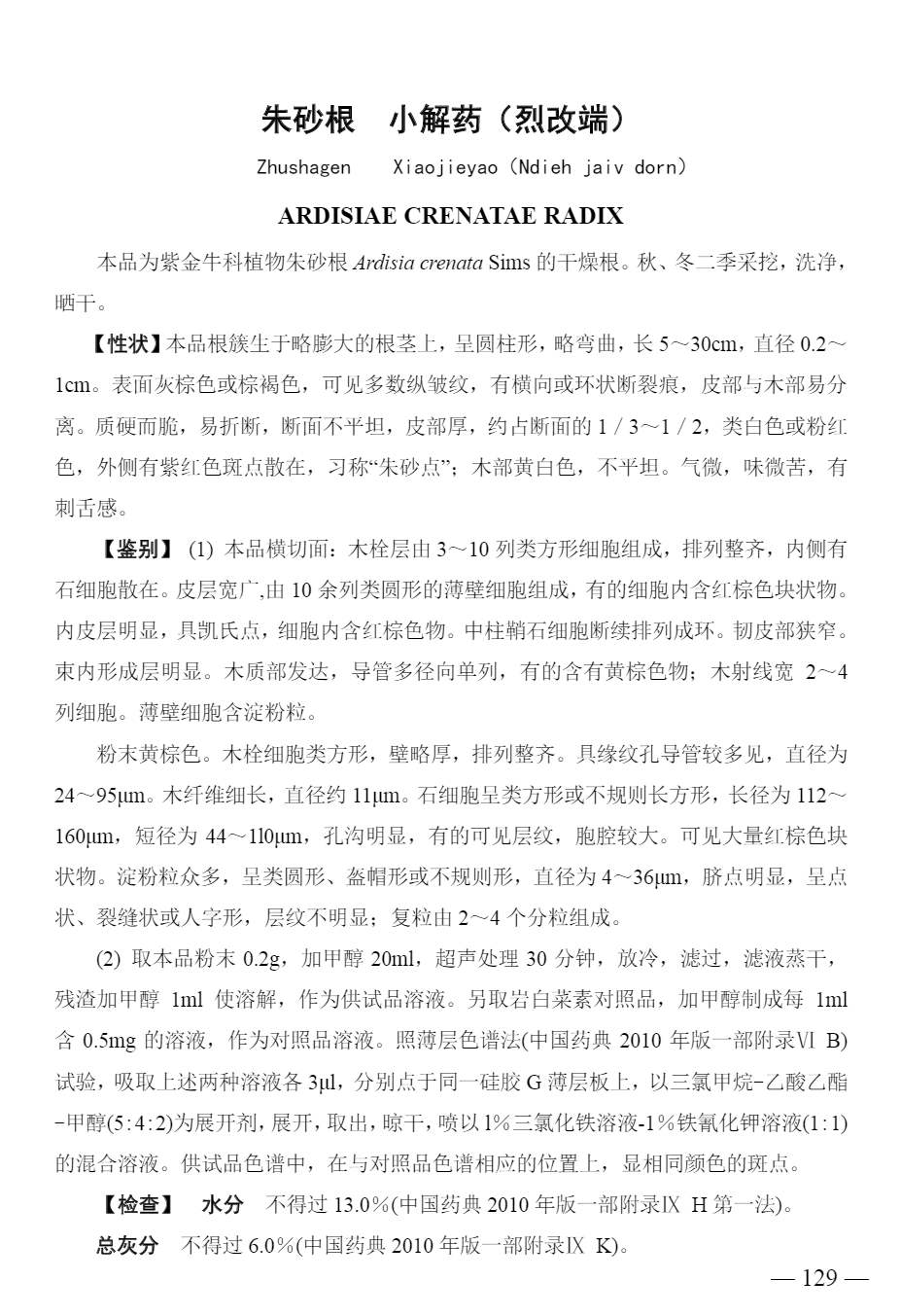 广西壮族自治区瑶药材质量标准 > 朱砂根/小解药