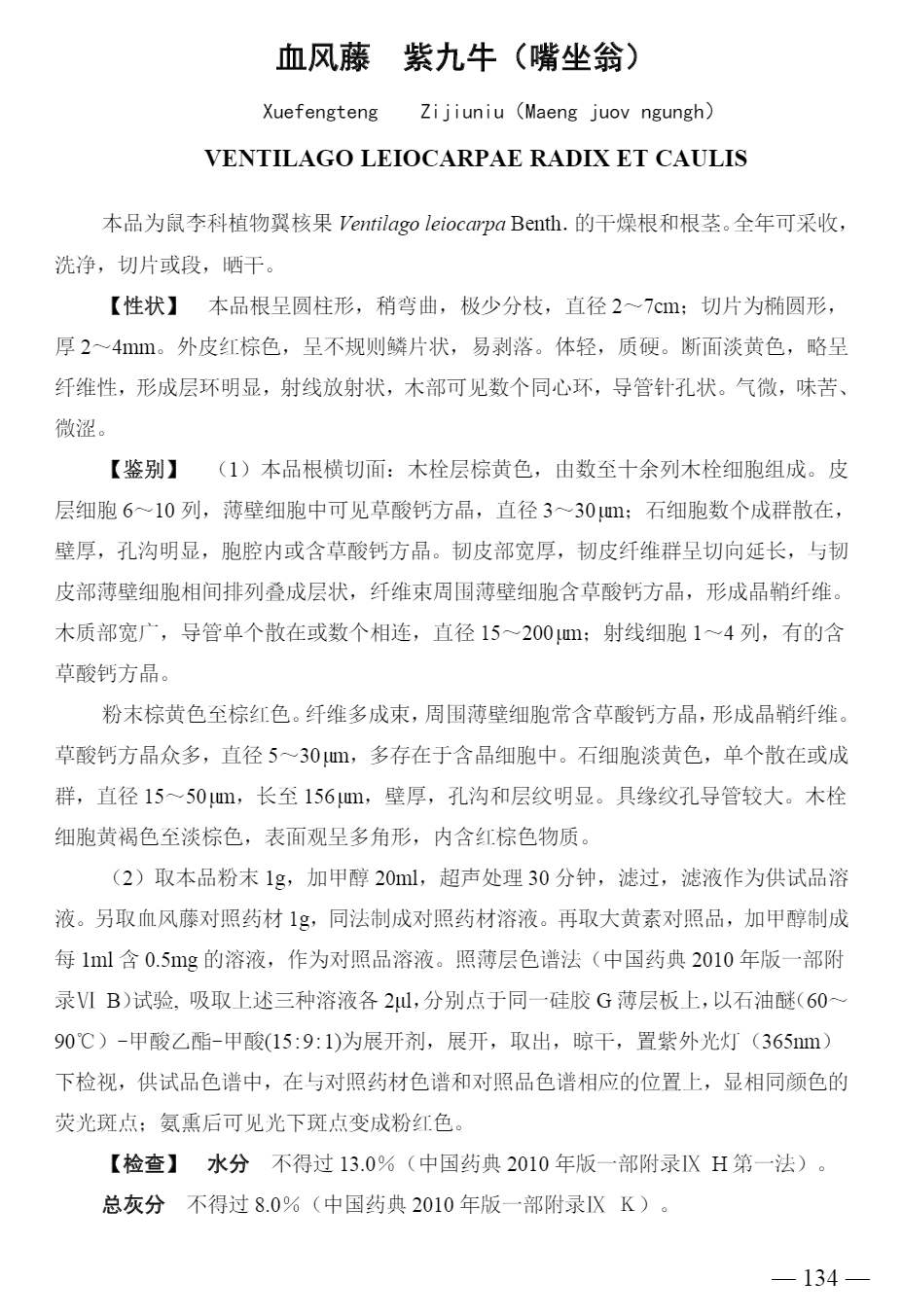 广西壮族自治区瑶药材质量标准 > 血风藤/紫九牛