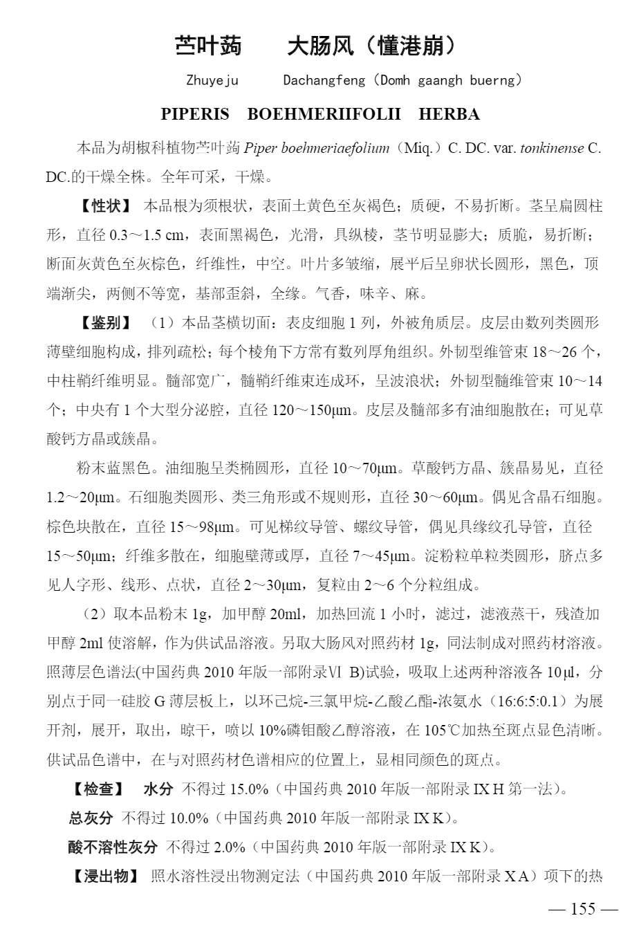 广西壮族自治区瑶药材质量标准 > 苎叶蒟/大肠风