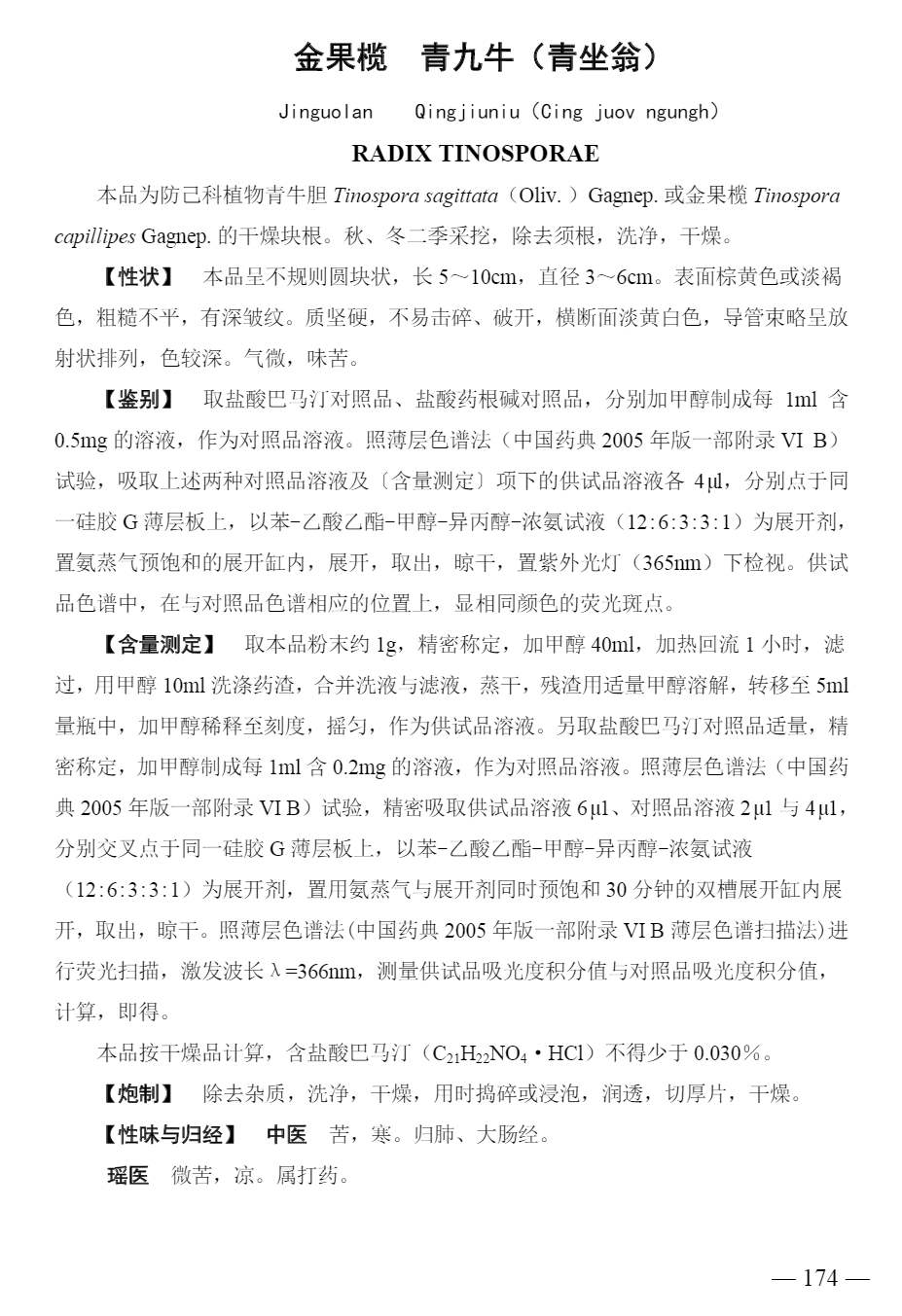 广西壮族自治区瑶药材质量标准 > 金果榄/青九牛