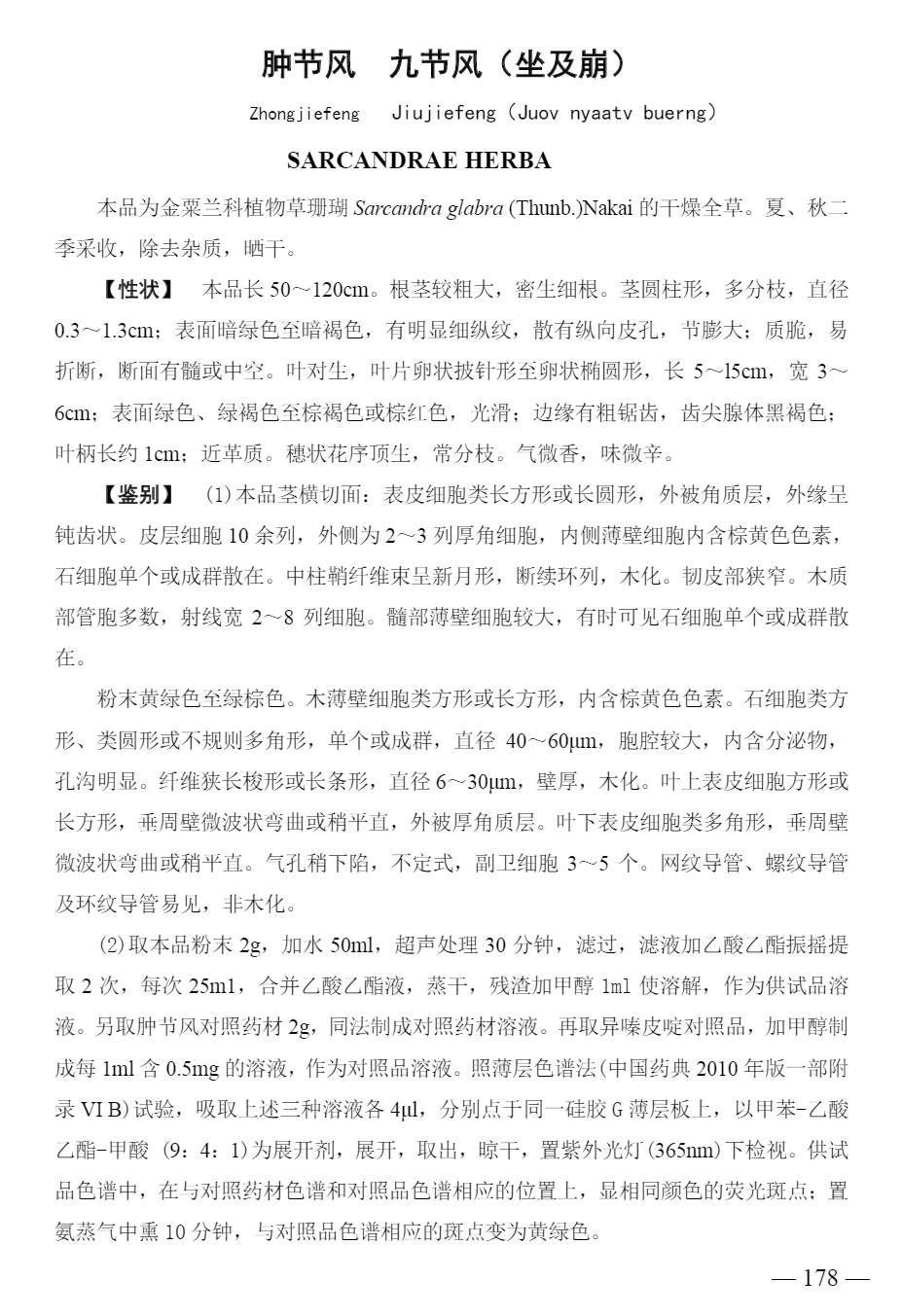 广西壮族自治区瑶药材质量标准 > 肿节风/九节风