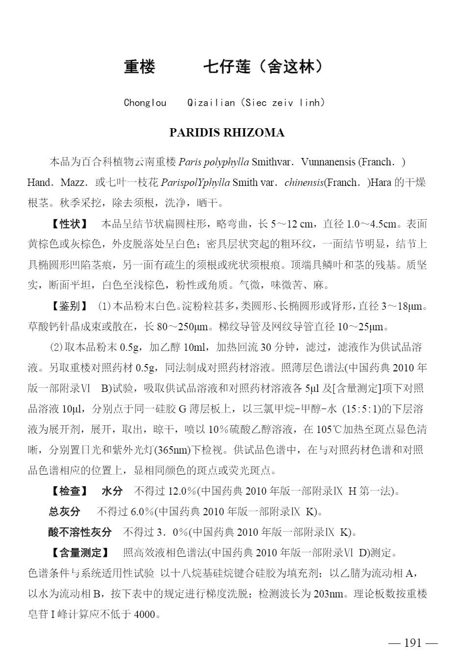 广西壮族自治区瑶药材质量标准 > 重楼/七仔莲