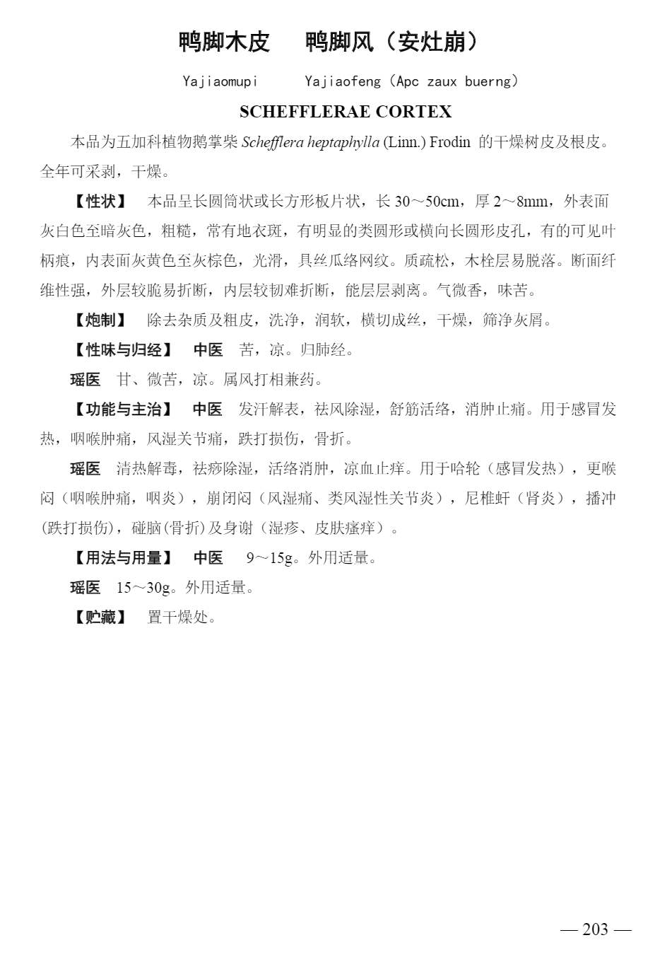 广西壮族自治区瑶药材质量标准 > 鸭脚木皮/鸭脚风