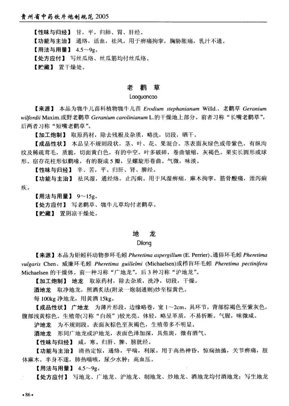 贵州省中药饮片炮制规范 > 地龙