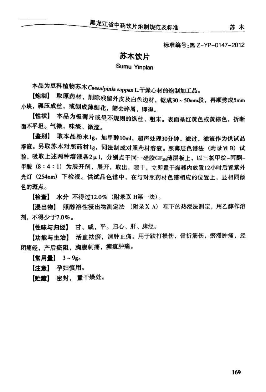 黑龙江省中药饮片炮制规范及标准 > 苏木饮片
