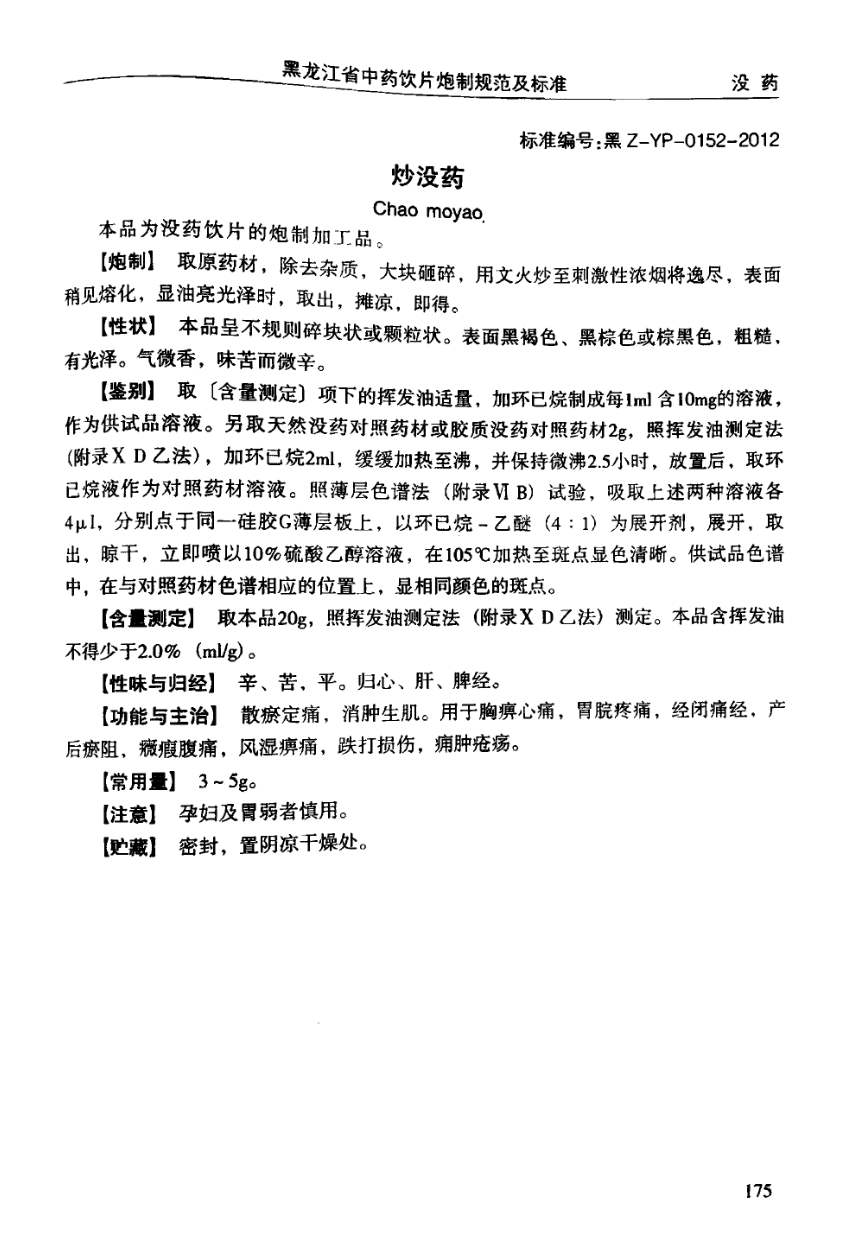 黑龙江省中药饮片炮制规范及标准 > 炒没药