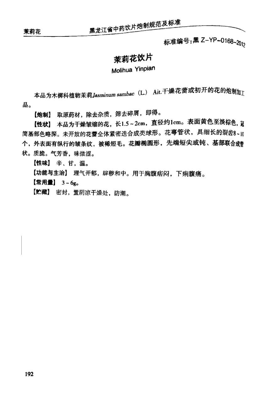 黑龙江省中药饮片炮制规范及标准 > 茉莉花饮片