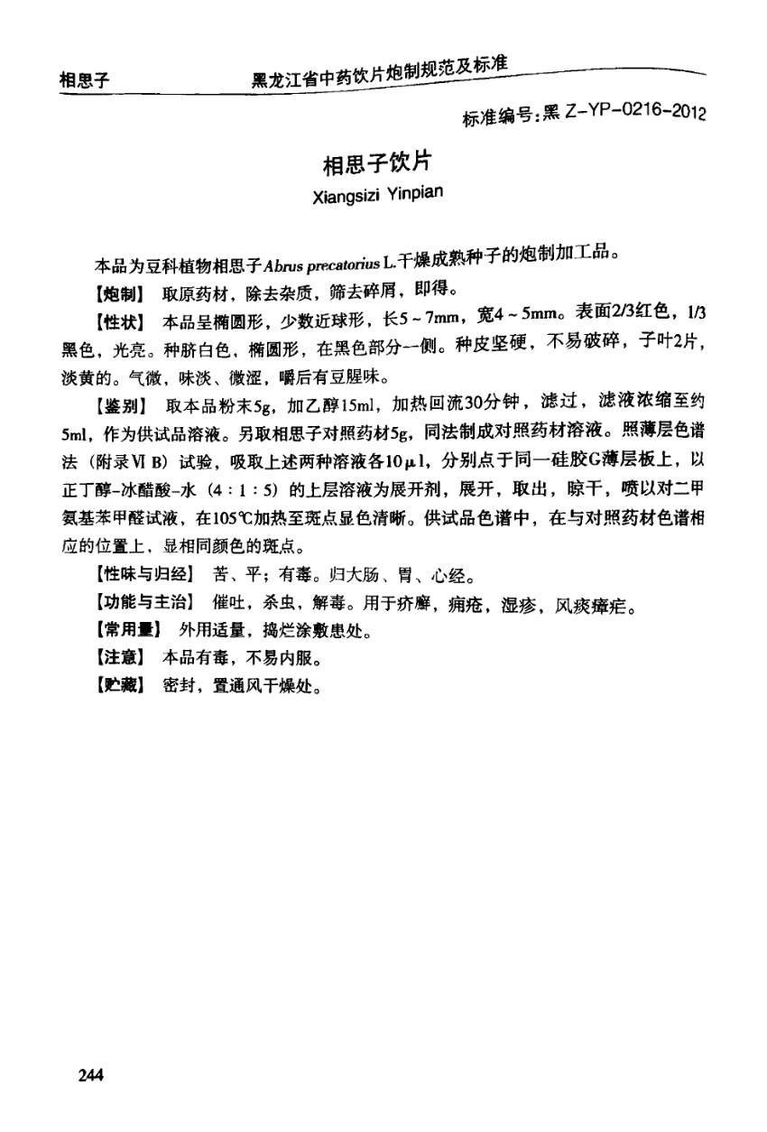 黑龙江省中药饮片炮制规范及标准 > 相思子饮片