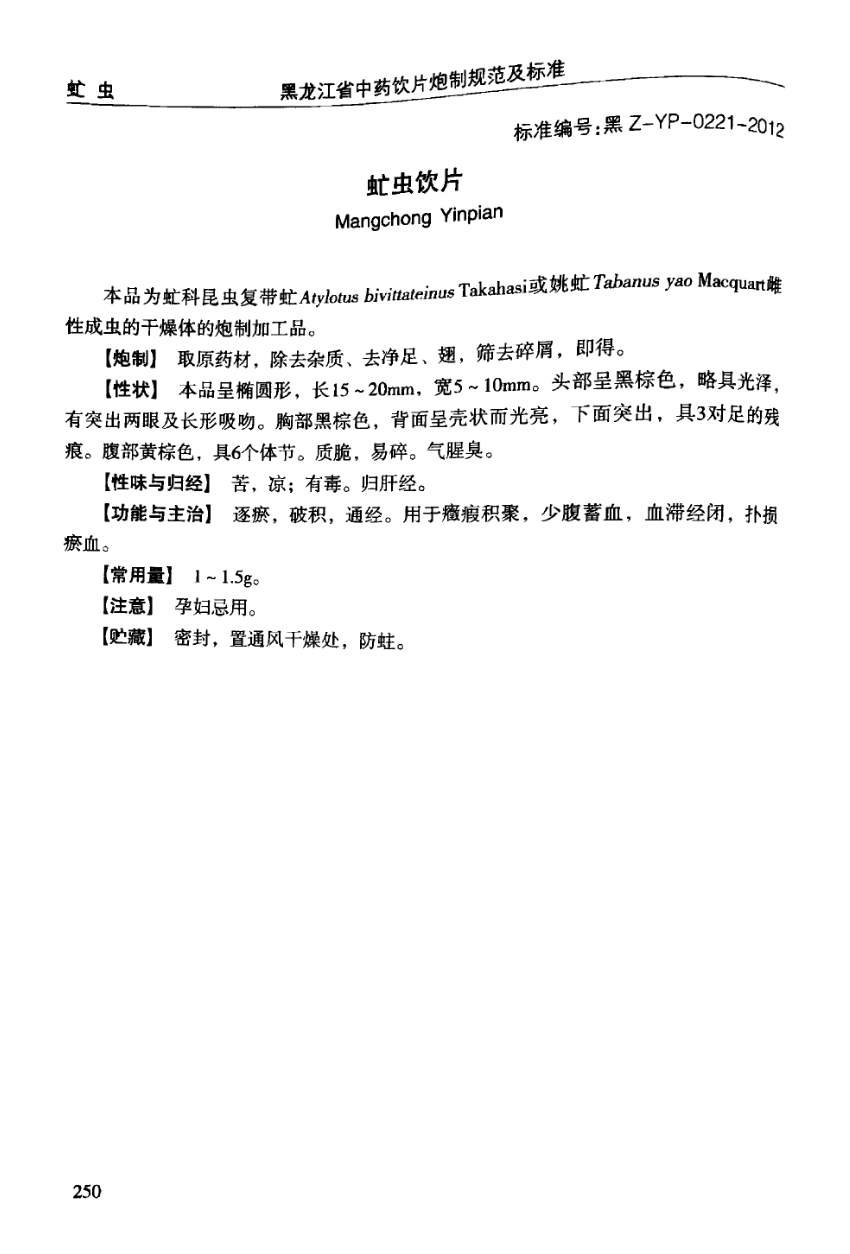 黑龙江省中药饮片炮制规范及标准 > 虻虫饮片