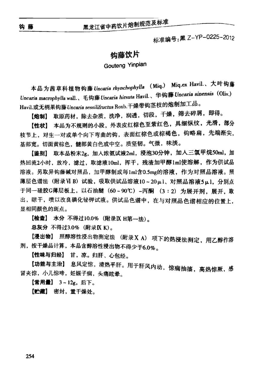 黑龙江省中药饮片炮制规范及标准 > 钩藤饮片