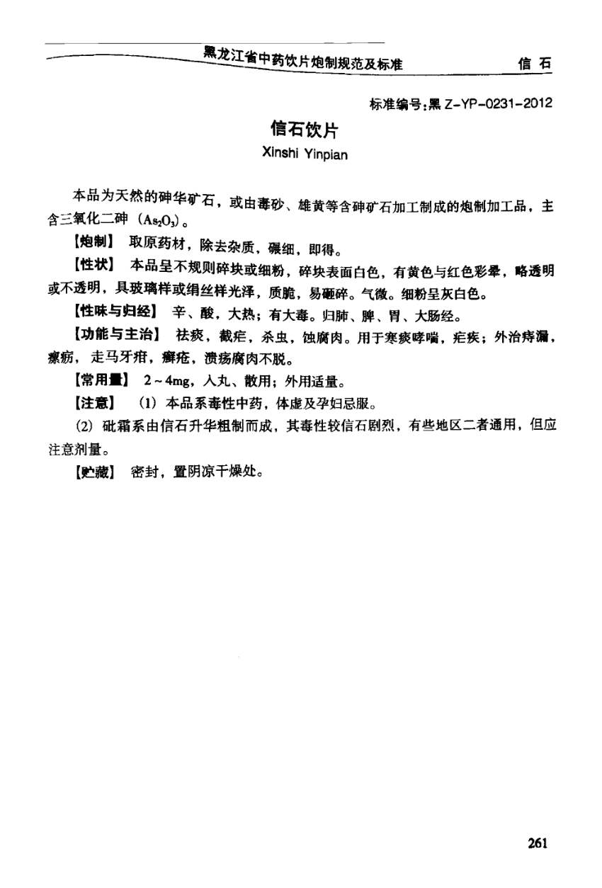 黑龙江省中药饮片炮制规范及标准 > 信石饮片
