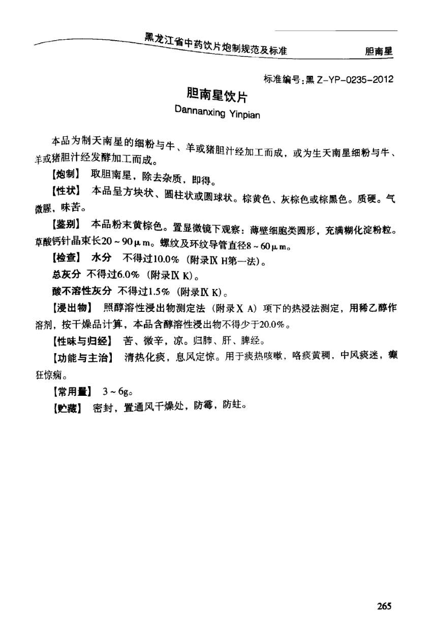 黑龙江省中药饮片炮制规范及标准 > 胆南星饮片