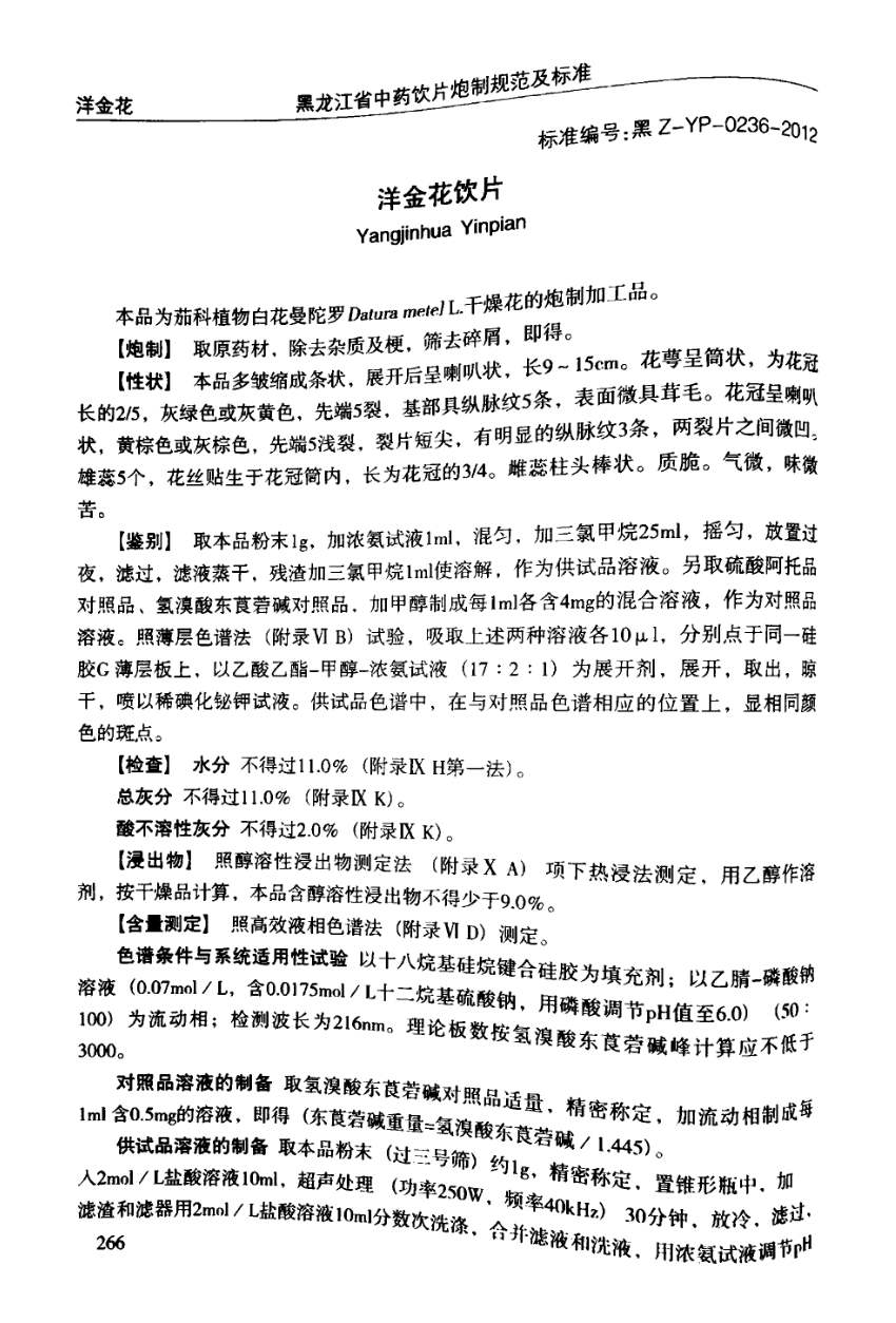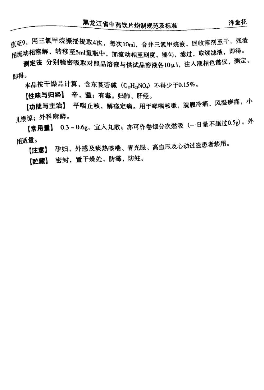 黑龙江省中药饮片炮制规范及标准 > 洋金花饮片