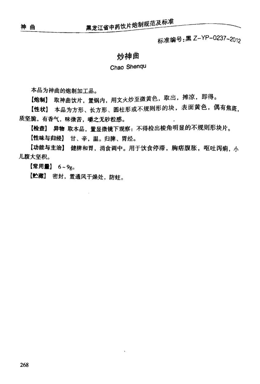 黑龙江省中药饮片炮制规范及标准 > 炒神曲