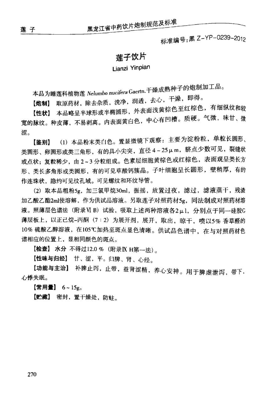 黑龙江省中药饮片炮制规范及标准 > 莲子饮片