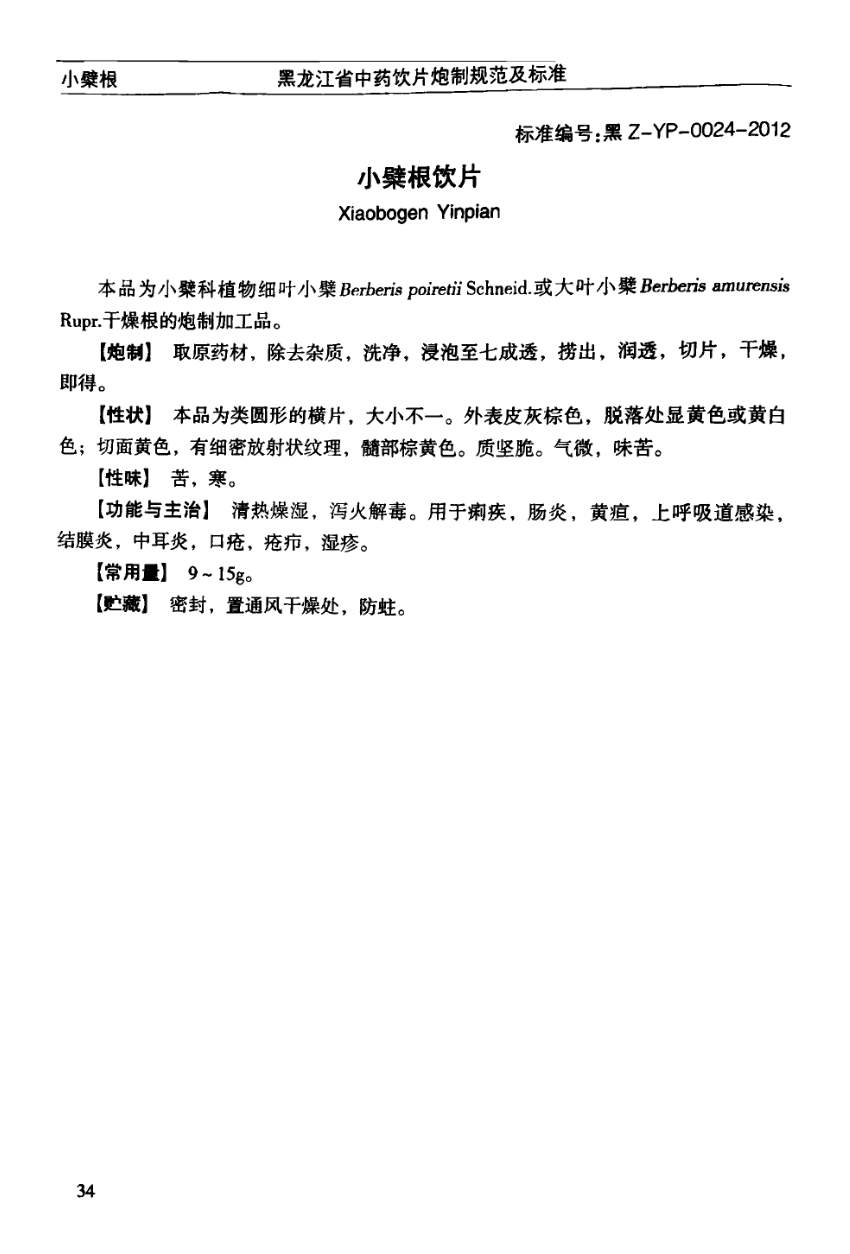 (黑龙江省中药饮片炮制规范及标准 - 2012年版)
