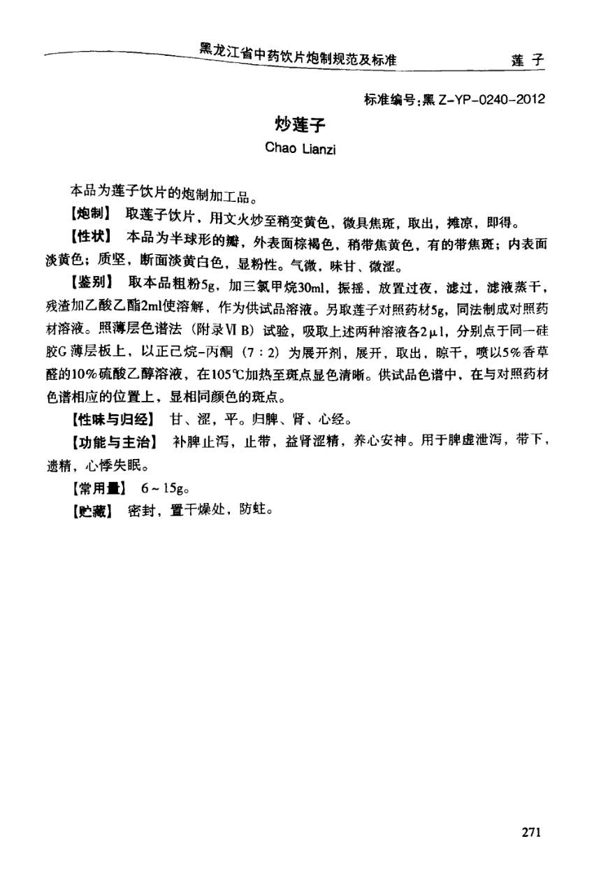 黑龙江省中药饮片炮制规范及标准 > 炒莲子
