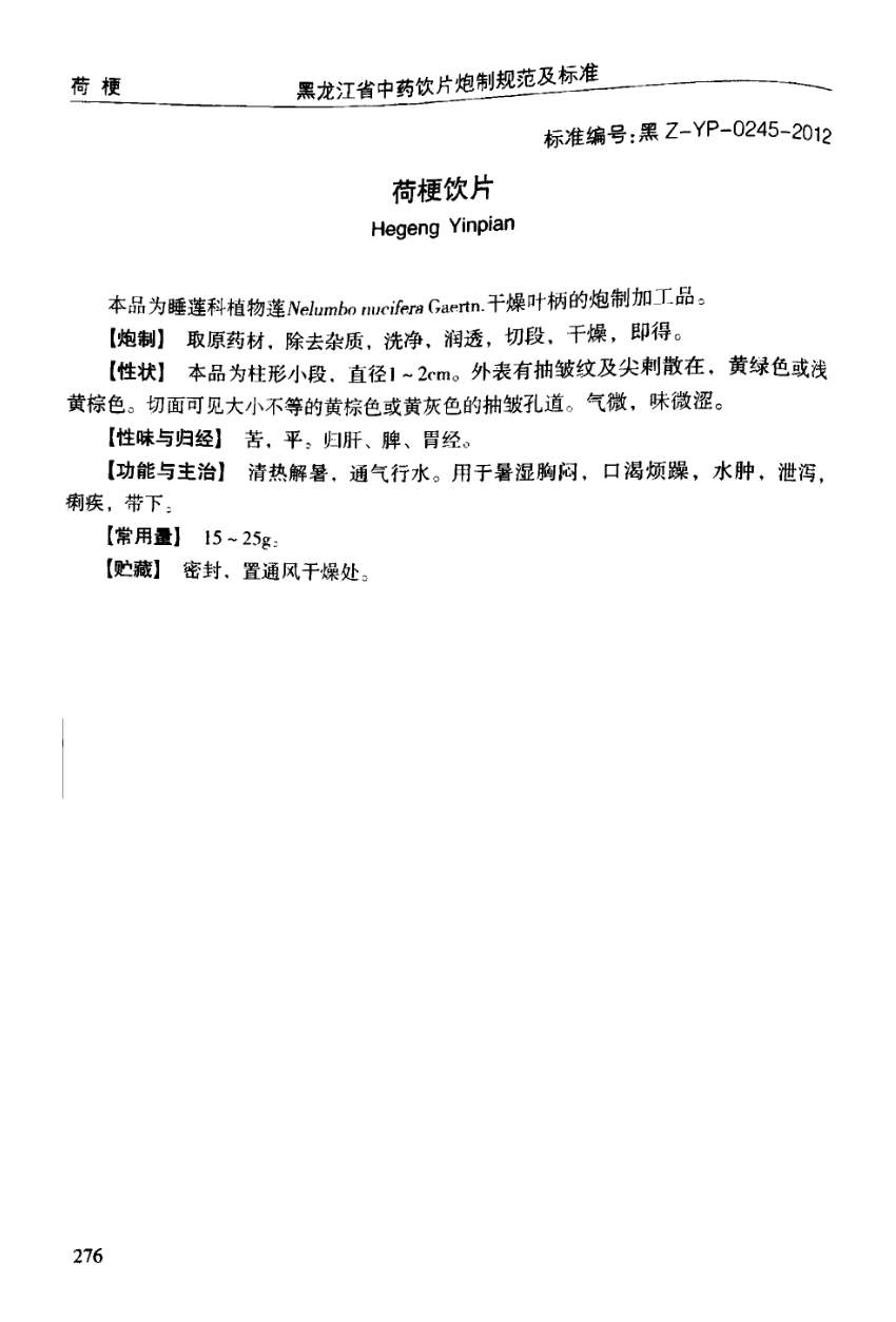 黑龙江省中药饮片炮制规范及标准 > 荷梗饮片