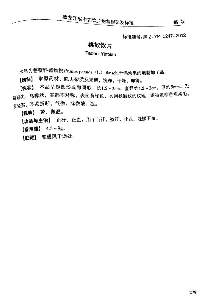 黑龙江省中药饮片炮制规范及标准 > 桃奴饮片