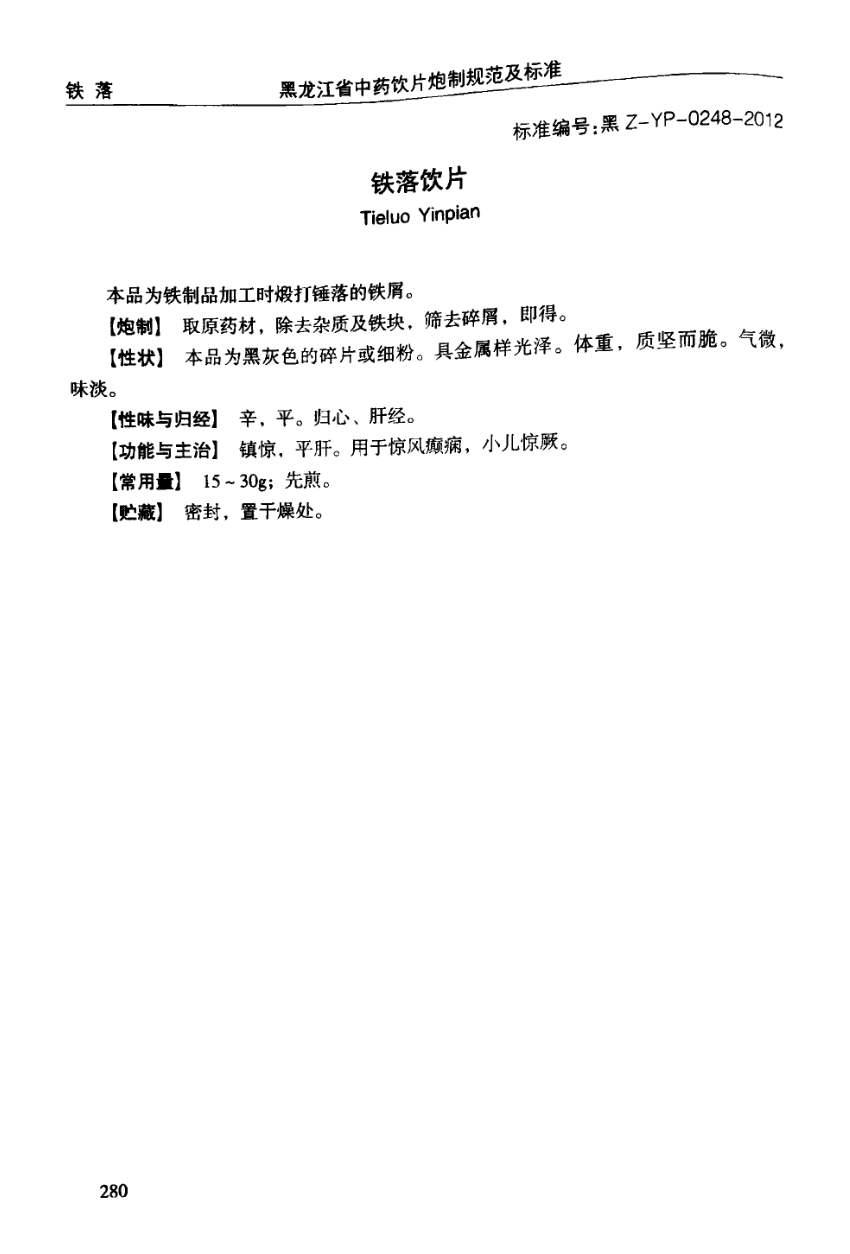 黑龙江省中药饮片炮制规范及标准 > 铁落饮片