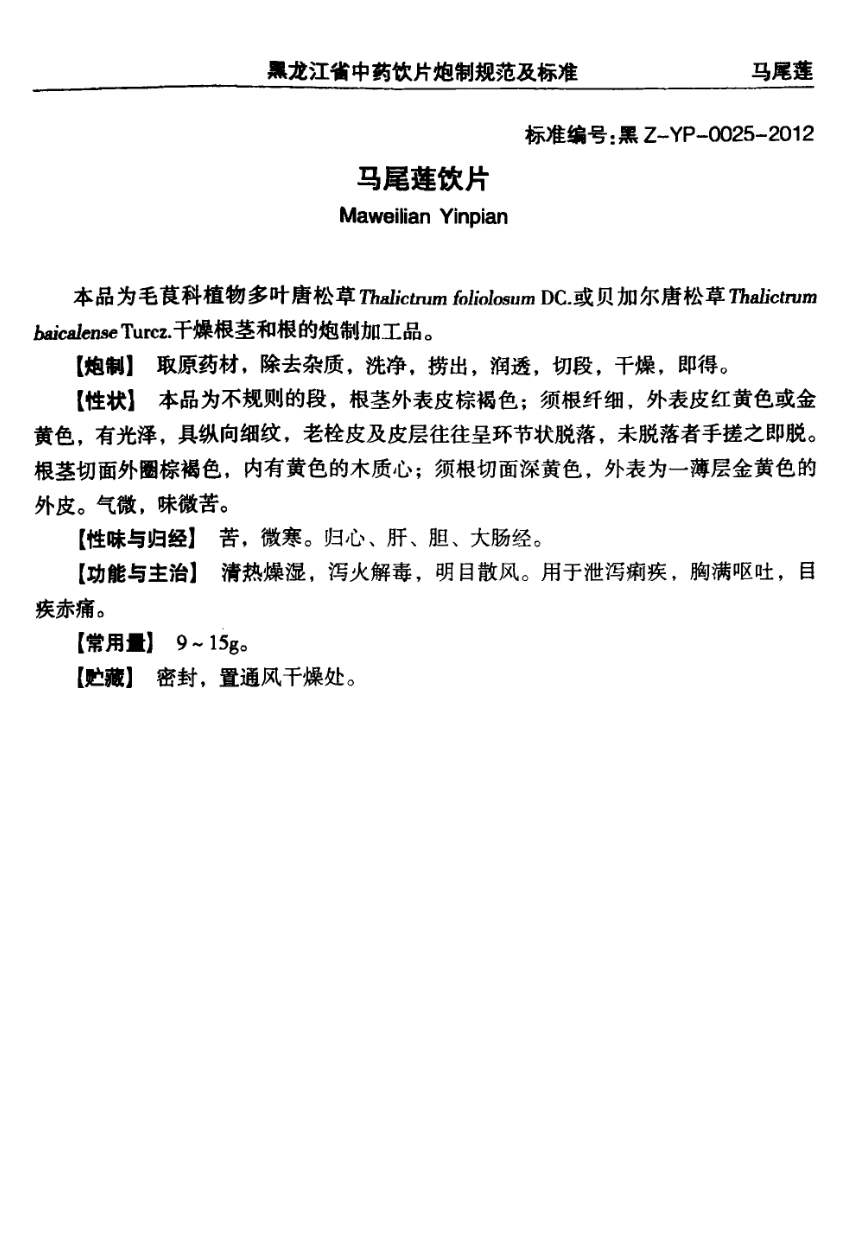 (黑龙江省中药饮片炮制规范及标准 - 2012年版)