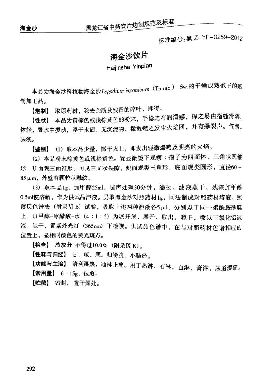 黑龙江省中药饮片炮制规范及标准 > 海金沙饮片