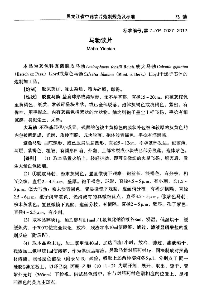 黑龙江省中药饮片炮制规范及标准 > 马勃饮片