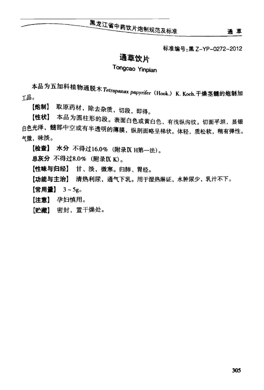 (黑龙江省中药饮片炮制规范及标准 - 2012年版)