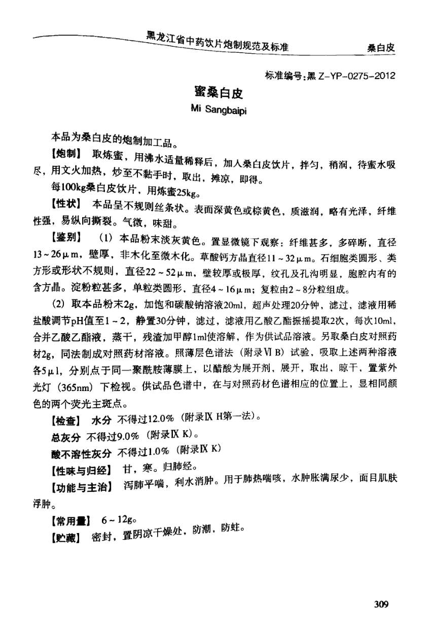 黑龙江省中药饮片炮制规范及标准 > 蜜桑白皮
