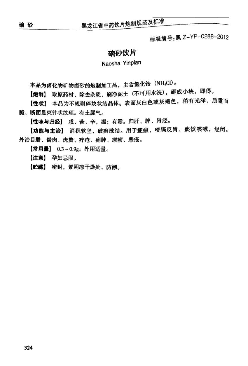 黑龙江省中药饮片炮制规范及标准 > 硇砂饮片