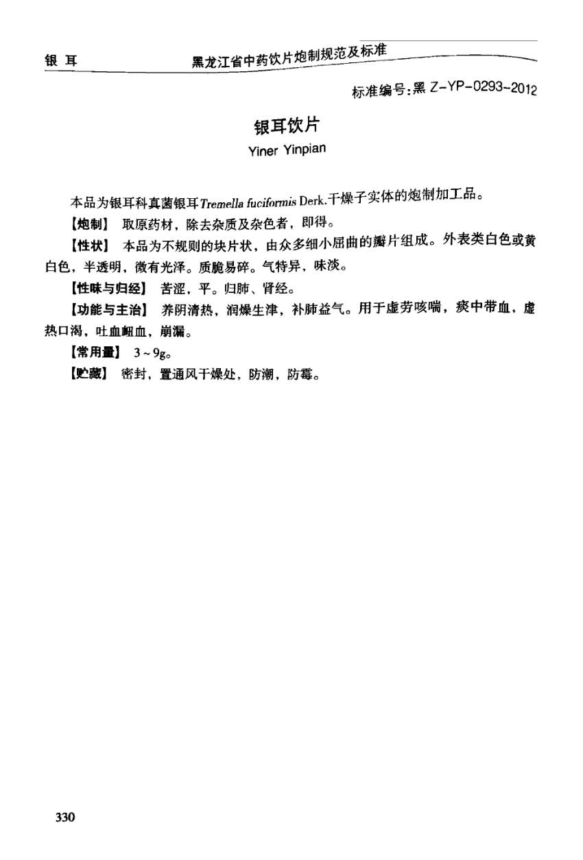 黑龙江省中药饮片炮制规范及标准 > 银耳饮片