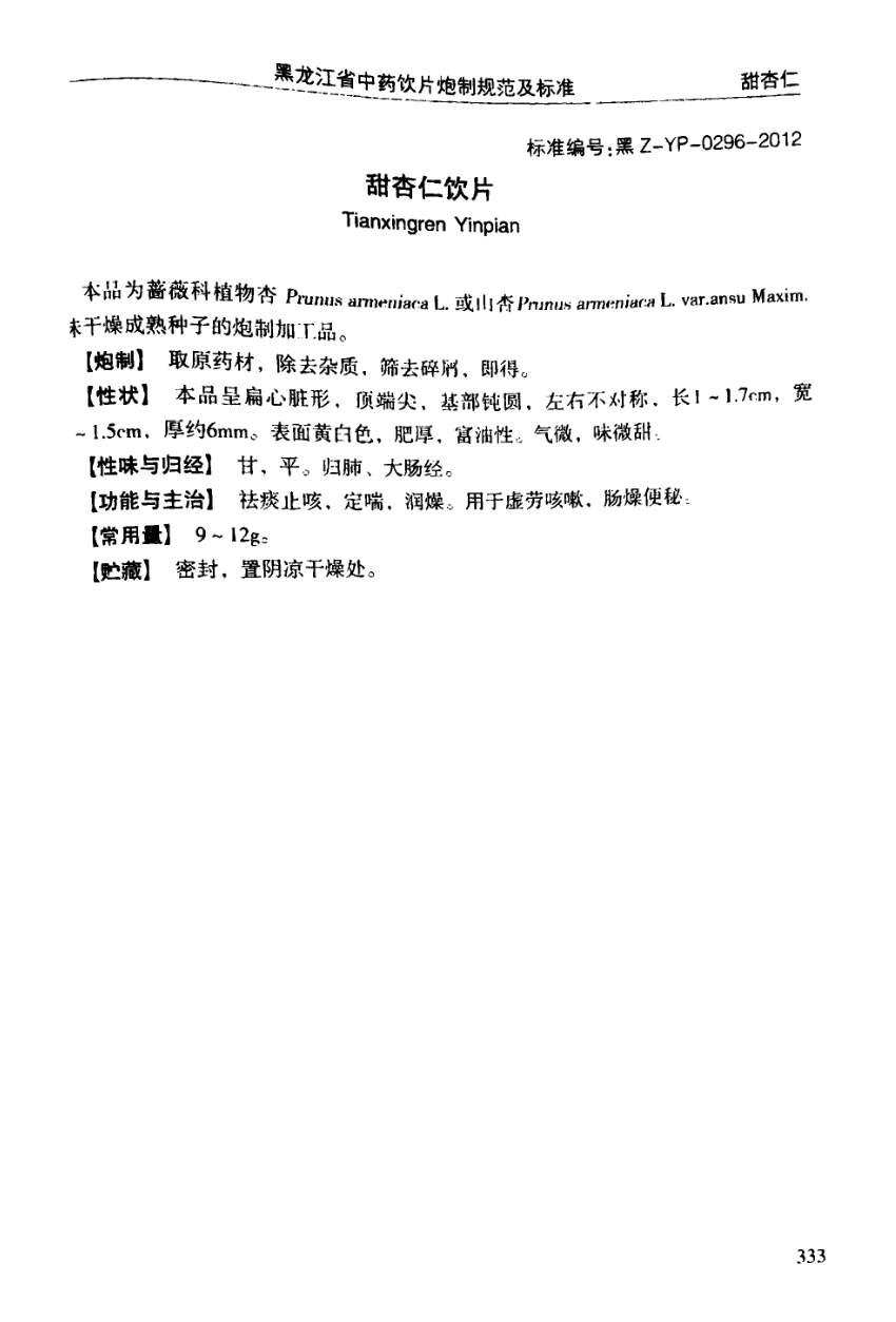 黑龙江省中药饮片炮制规范及标准 > 甜杏仁饮片