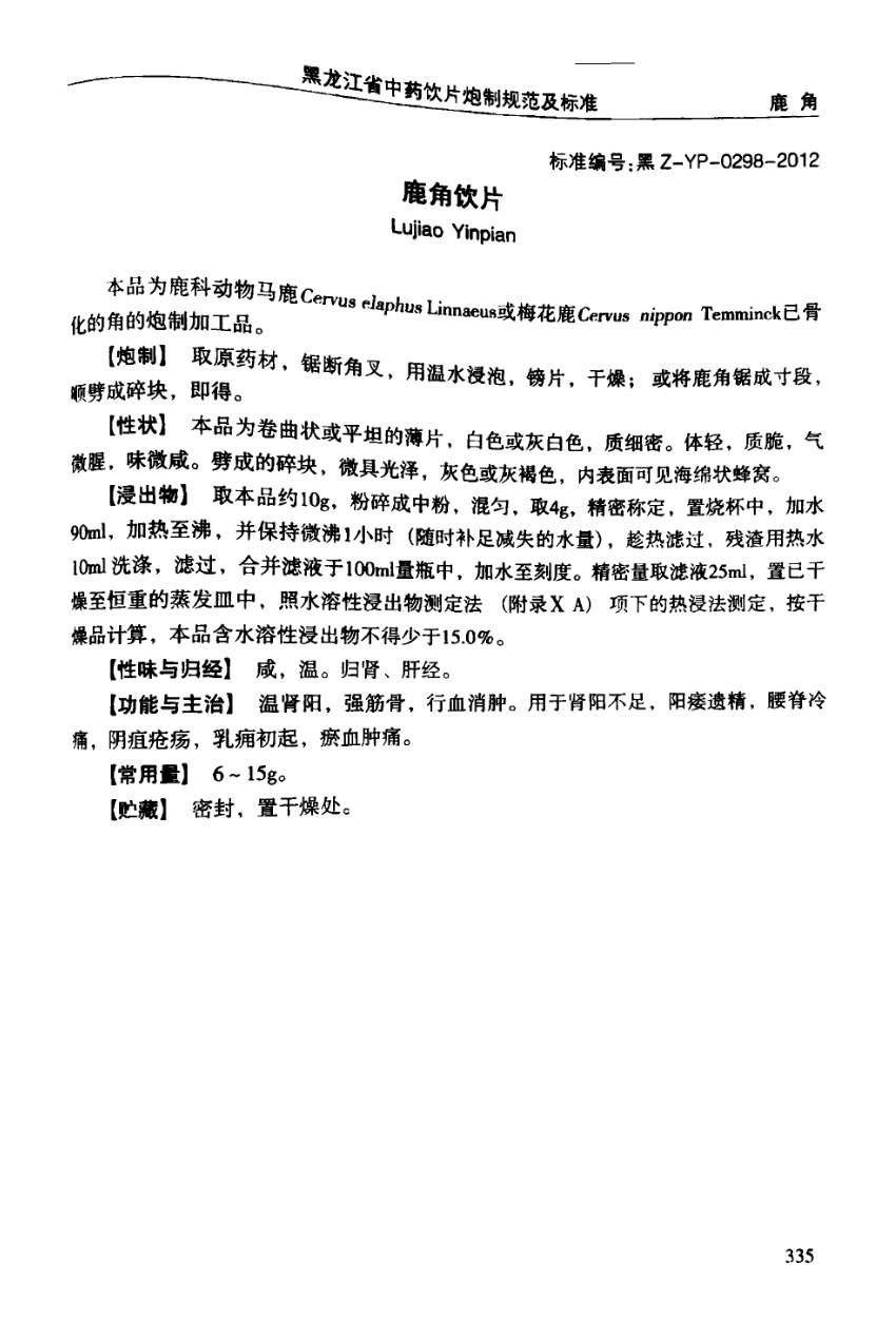 黑龙江省中药饮片炮制规范及标准 > 鹿角饮片