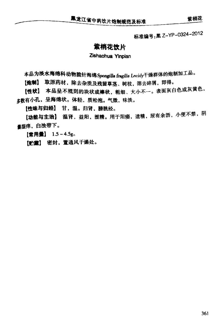 (黑龙江省中药饮片炮制规范及标准 - 2012年版)